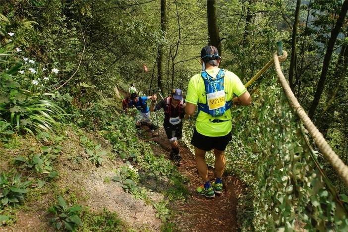 当天上午8点,随着发令枪响,早已热身就绪的运动员,按照既定的赛道,甩开膀子跑起来,途经田野、村庄、高山、峡谷、密林……沿途设有6个补给站,可提供食物、水、功能饮料等补给和医疗、救援等方面的服务。