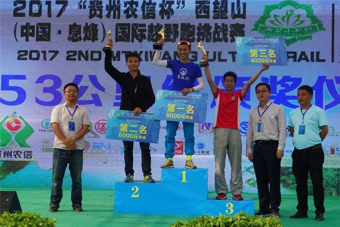 比赛经过激烈角逐,来自青海的选手贾俄仁加斩获53KM男子组冠军,完赛成绩是4小时42分54秒,季亚军被陈凡和方从进夺得,成绩分别是5小时18分29秒和5小时20分3秒。而53KM女子组第一名被遵义选手张红粉摘下桂冠,成绩是6小时5分57秒,第二、第三名被蒋蓉和梁艳夺得。骆滔和吴凯英分别荣获20KM男女组冠军,成绩分别是1小时44分15秒和2小时28分51秒。据组委会介绍,53KM组完赛选手将取得世界越野跑协会年度3个积分。