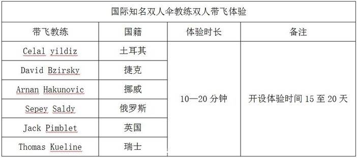 活动期间,还将邀请国际知名滑翔伞飞行教练亲临贵州指导开班教学。我们将以专业化的标准来保证授课质量,为热爱滑翔伞运动的爱好者们提供滑翔伞初级启蒙培训和中、高级深入培训的机会。不仅如此,同时还邀请到国际知名双人伞教练开展特技滑翔伞双人带飞体验,让你与天空亲密接触,感受滑翔伞给你带来的刺激、激情释放的独特魅力,各类飞行特技体验,平时看着都觉得炫目的动作,现在都可亲身体验,绝对让你回味无穷,流连忘返。