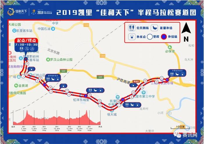 本次马拉松赛以“苗侗明珠·山水凯里 喜迎祖国70华诞”为主题,设置半程组21.0975KM、体验组5KM两个组别,总规模3000人。赛事路线设置以民族文化、生态环境为核心,途径风雨桥长廊、三棵树银帽广场、开怀主题公园等极具黔东南民族特色的景点,参赛选手可以一边跑马,一边欣赏美丽的风光。