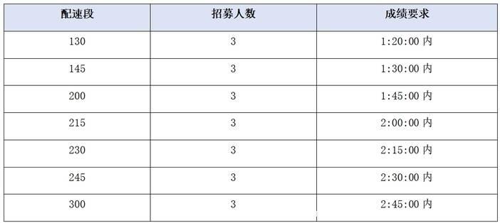 1.本次招募采用先报名,后审核的方式,每组配速10个预选名额,最终选定三人。