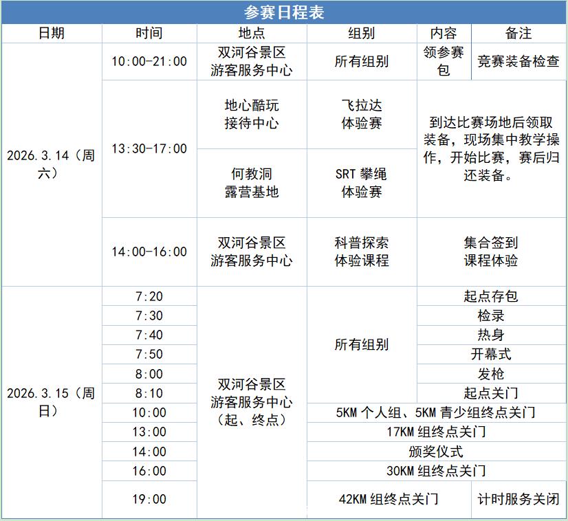 1.根据《中国登山协会山地越野跑赛事参赛指引》发布的越野赛竞赛规程要求,为保障您的参赛顺利及赛事安全。42KM组、30KM组别选手需在报名时提交一份在近一年内(2025年3月14日至2026年3月14日期间),由县级及以上正规医院或体检机构出具的体检报告进行参赛资格审核。