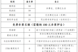 2.在满足参赛条件下的精英选手可报名任意组别(报名成功后不能更改)。所有组别均免报名费,但报名时须缴纳100元押金,报到且参与本次比赛的运动员活动结束后原路返还押金,报名未参赛运动员则不予返还,请运动员须知。
