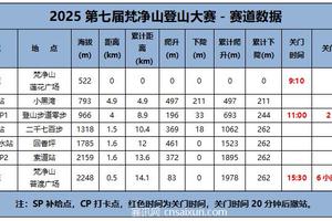 注:SP补给点,CP打卡点,红色时间为关门时间,关门时间20分钟后撤站。