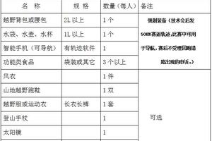 备注:除规定的“必备”装备外,其余装备自愿配备。技术会后下发50KM赛道轨迹,比赛中可用于导航,赛后不受理因跑错路出现的申诉。