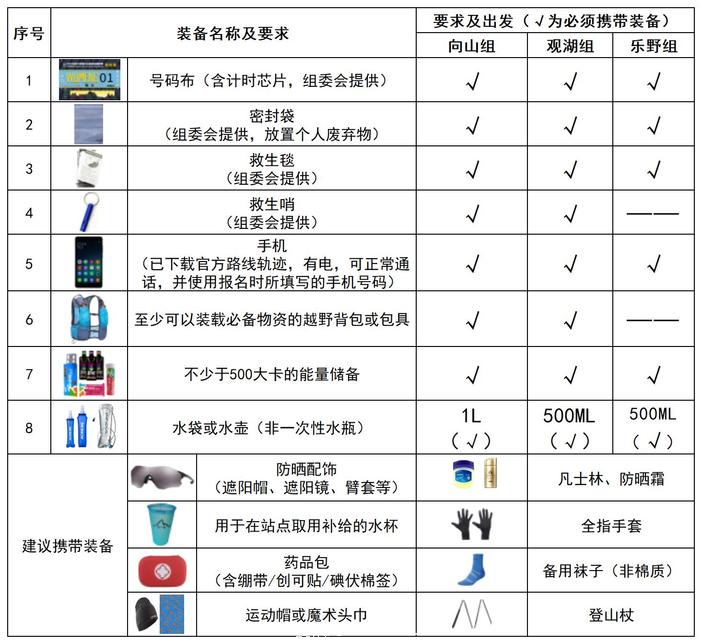 2.参赛选手在比赛中出现情况需紧急救援,请打号码布上的救援电话,与救援人员联系,将获得救助;但在较偏僻的山里,救援人员没有到达之前,参赛选手确保自身及环境安全,可披上急救毯,用随身携带的简单医用品进行自救,就地等候救援;