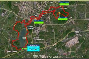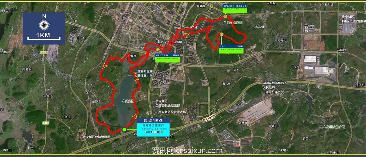 1.星月组(22KM)赛道路线:月亮湖公园南门(起点)→月亮湖路→团寨→杨梅寨(CP1饮水站)→下坝村→天马山→CP2→星月湖公园(CP3/SP1)→赵家庄→公望街→新民村→汤庄村→月亮湖路→月亮湖公园南门(终点)