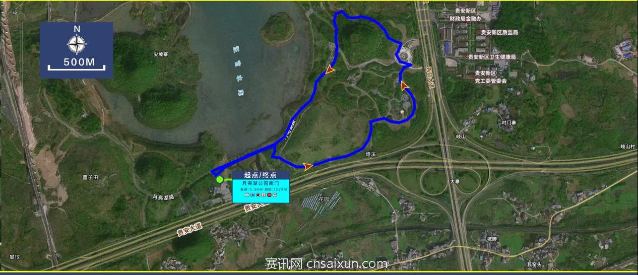 3.欢乐跑(3.3KM)赛道路线:月亮湖公园南门(起点)→月亮湖路→月亮湖公园南门(终点)