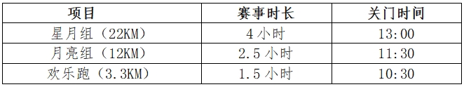 5.终点关门时间具体见下表: