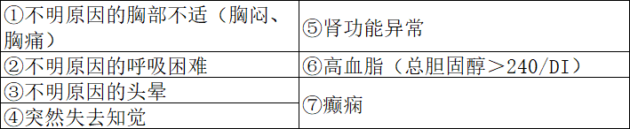 (9)有以下疾病状况,属猝死高危险人群,请咨询医师专业的判断,请勿勉强: