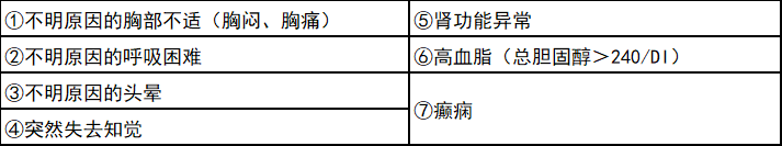 (9)有以下疾病状况,属猝死高危险人群,请咨询医师专业的判断,请勿勉强: