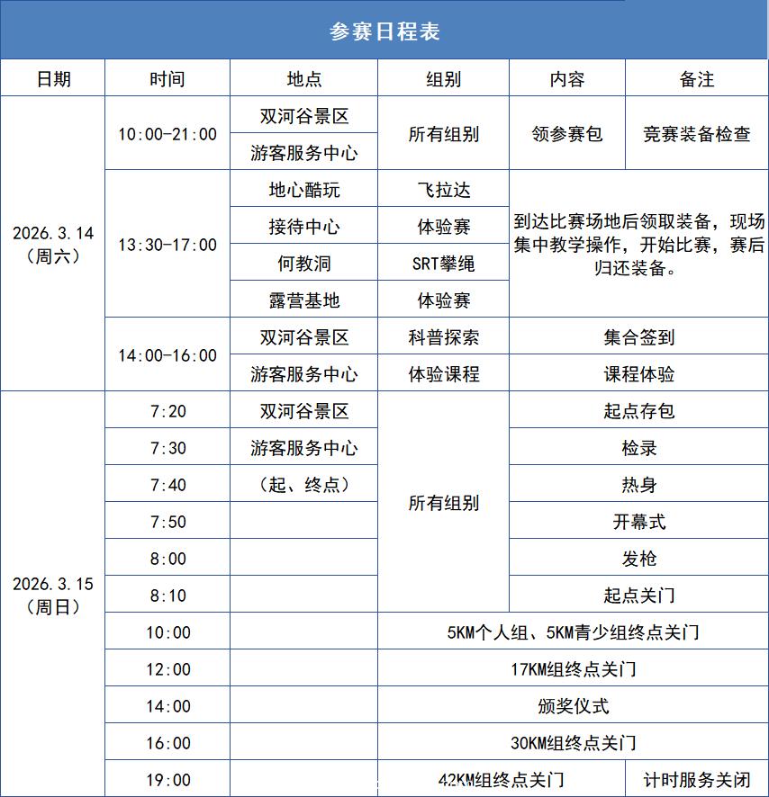 1.根据《中国登山协会山地越野跑赛事参赛指引》发布的越野赛竞赛规程要求,为保障您的参赛顺利及赛事安全。42KM组、30KM组别选手需在报名时提交一份在近一年内(2025年3月14日至2026年3月14日期间),由县级及以上正规医院或体检机构出具的体检报告进行参赛资格审核。
