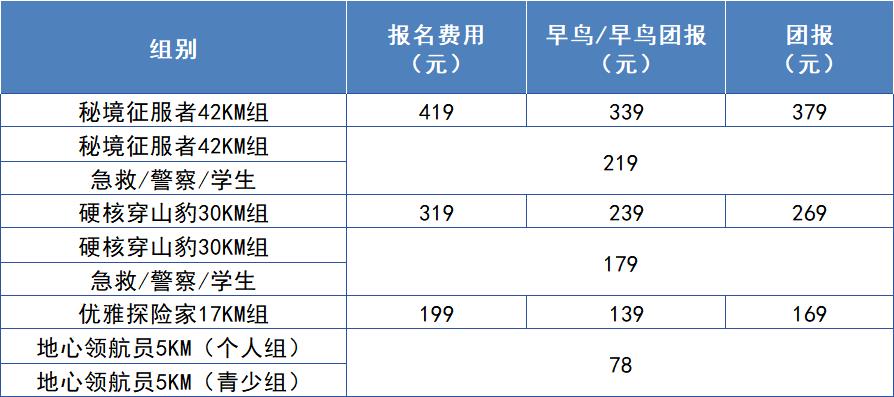(五)组别设置:秘境征服者42KM组、硬核穿山豹30KM组、优雅探险家17KM组、地心领航员5KM(个人组)、地心领航员5KM组(青少组)
